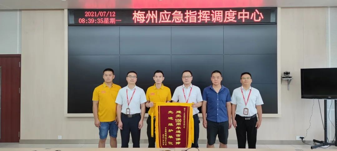 活动当天,各传输枢纽值守、干线盯防、仪表、车辆、应急物资全部到位,除落实安全人员24小时值班机制外,公司还部署实施了态势感知、应急响应、持续安全评估、安全监测巡检等措施,实现重保期间网络安全零事故。为此,星空公司通服被中国联通梅州市分公司授予“建党100周年通信保障先进维护单位”的荣誉锦旗。